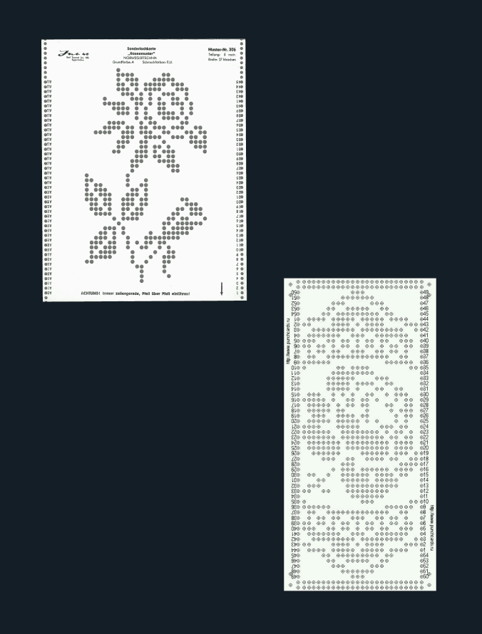 Embroidered patterns and letterforms presented an interesting point of inspiration for the brand visual language. However, after some further research I stumbled across punchcards that are used for machine knitting application.